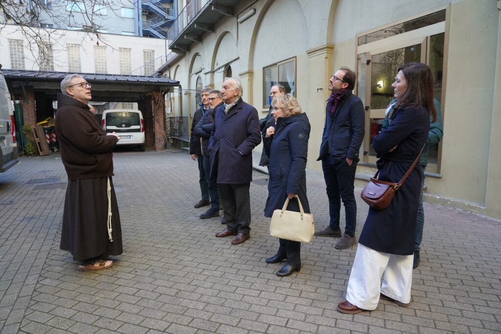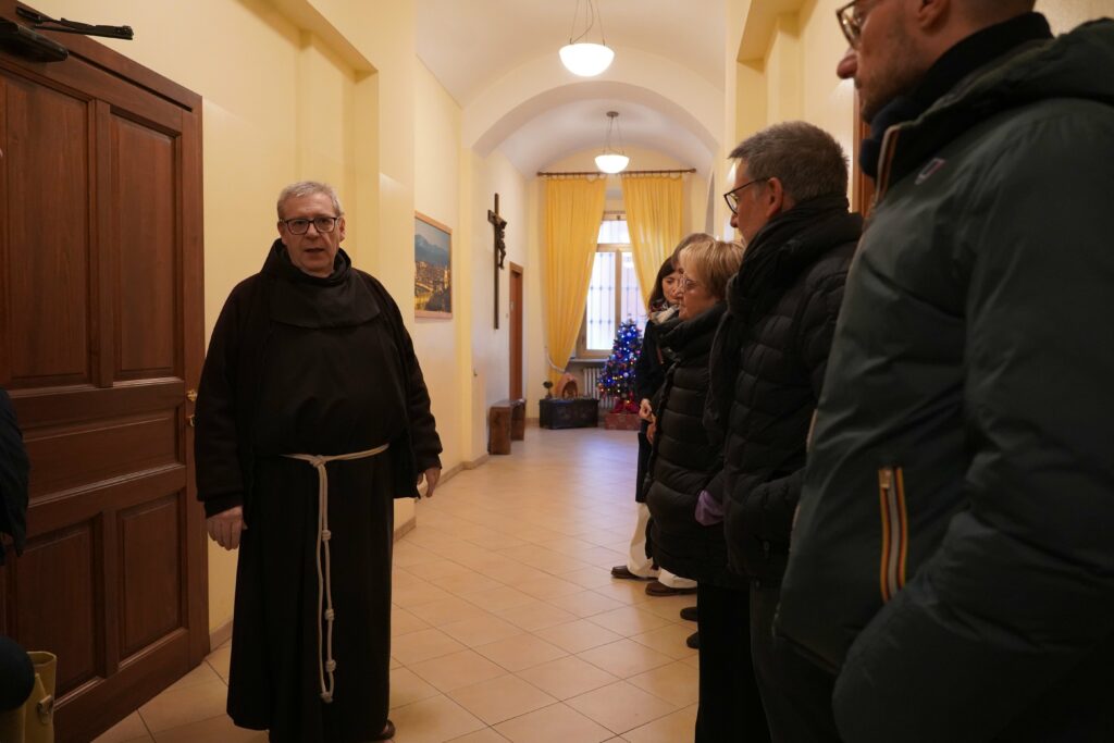 I dati che ci ha illustrato durante la visita hanno restituito un quadro significativo delle fragilità contemporanee. La tipologia delle persone assistite è cambiata dopo la pandemia: oggi aumentano gli italiani, spesso donne sole che hanno perso il lavoro; rimangono importati le presenze di persone straniere, di ogni origine e religione. Accanto al servizio della mensa, il convento segue circa 250 nuclei familiari che ricevono aiuto direttamente a casa, evitando loro la necessità , talora vissuta come una vergogna sociale, di recarsi in struttura. Il supporto include anche un accompagnamento psicologico, fondamentale per chi vive momenti complessi.